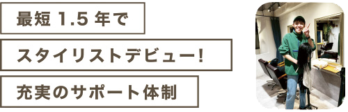 - アシスタントが早期にスタイリストデビューを果たし、活躍できる環境を整えています。最短1.5年でデビュー可能なカリキュラムを構築し、成長をしっかりサポート。さらに、営業時間内での練習もOKなので、効率的にスキルを磨けます。早く活躍したいという想いを実現できる教育体制で、あなたの夢をサポートします!